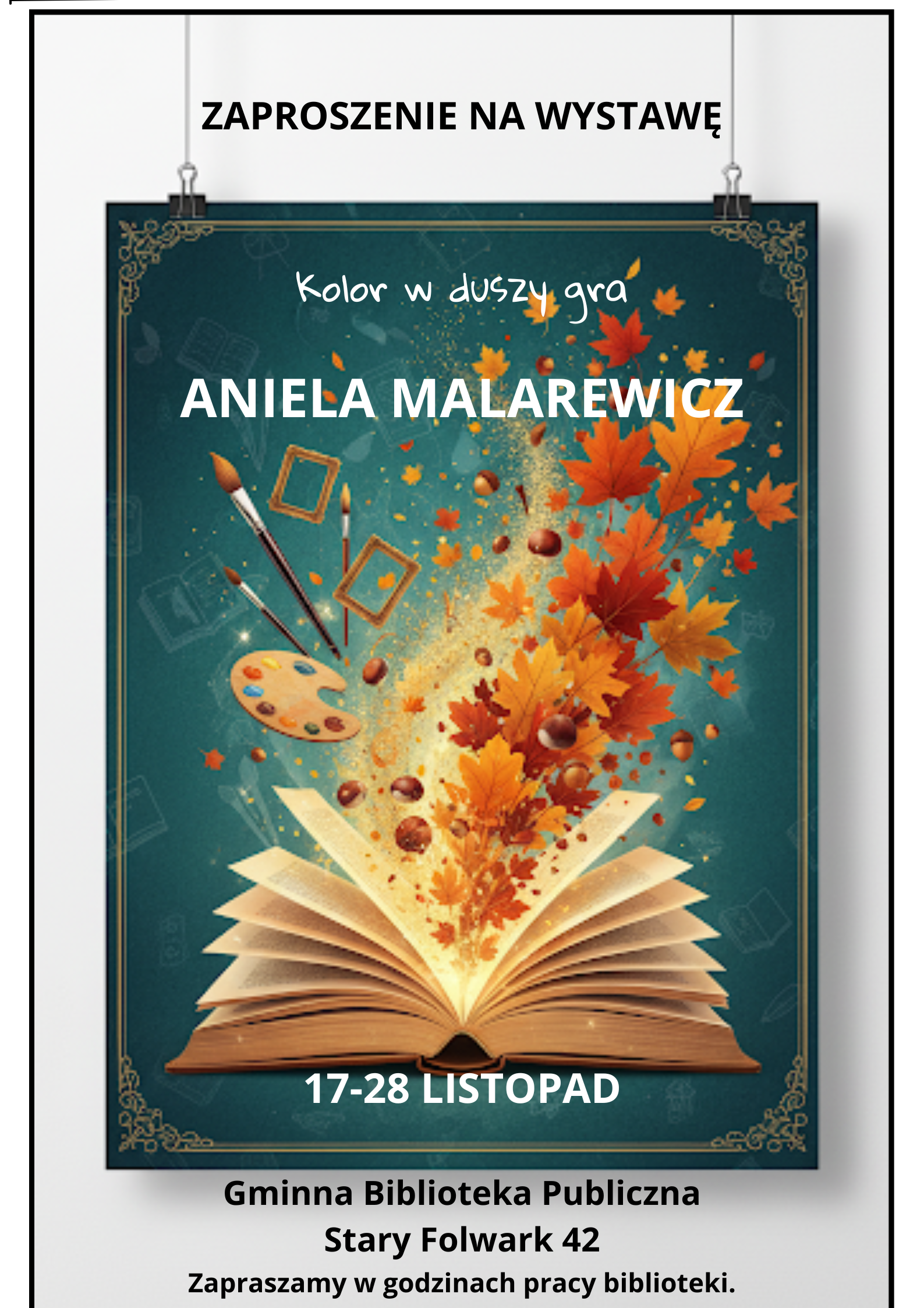 Serdecznie zapraszamy na wystawę obrazów Pani Anieli Malarewicz. Prace można zobaczyć w naszej bibliotece w Starym Folwarku. Zapraszamy w godzinach pracy biblioteki od 17 do 28 listopada 2025.