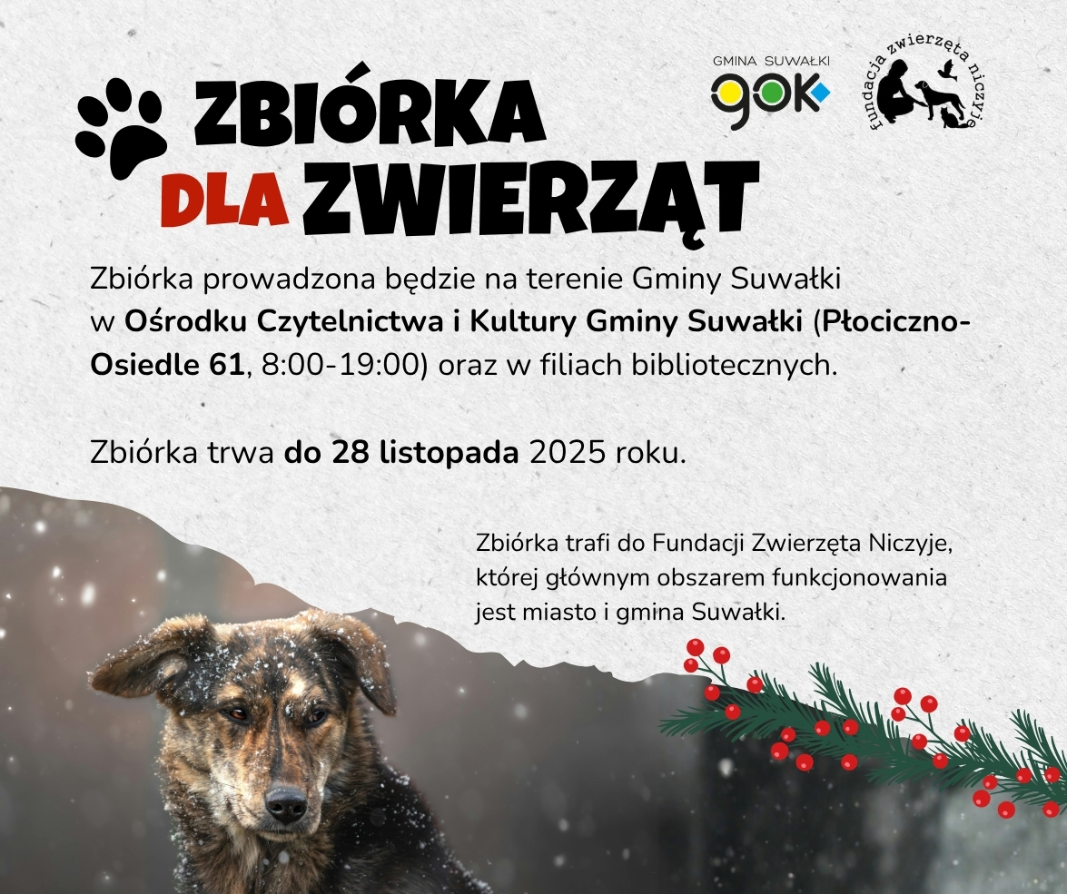 Zachęcamy do przyłączenia się do zbiórki dla zwierząt. POTRZEBUJEMY: mokrej i suchej karmy dla psów i kotów (dobrej jakości, np.: Smilla, Butchers, Rafi, Rocco) | dużych misek | szelek, obroży, smyczy | legowisk nowych lub używanych | starych ręczników, prześcieradeł i poszewek | podkładów jednorazowych | ręczników papierowych| rękawiczek gumowych | środków czystości | żwirku […]