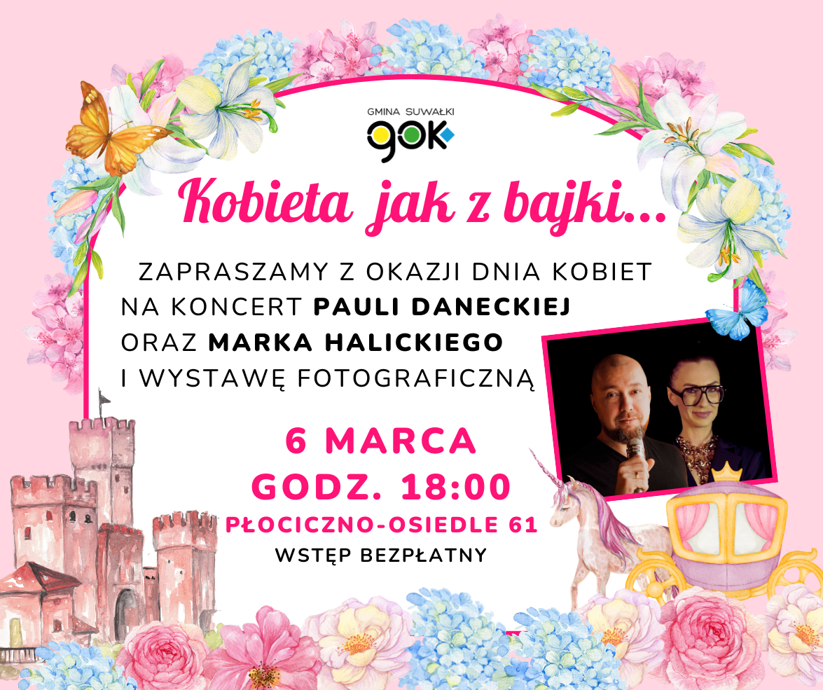 Zapraszamy na koncert Pauli Daneckiej i Marka Halickiego z okazji Dnia Kobiet oraz wyjątkową wystawę fotograficzną. 📅 6 marca 2026 r., godz. 18:00📍 Miejsce: Płociczno-Osiedle 61🎟 Wstęp wolny Niech to będzie prawdziwie bajkowy wieczór. W końcu każda Kobieta jest jak z bajki – wyjątkowa, niepowtarzalna i pełna blasku! 👑✨ Dlatego zachęcamy wszystkie Panie do założenia bajkowych stylizacji, […]