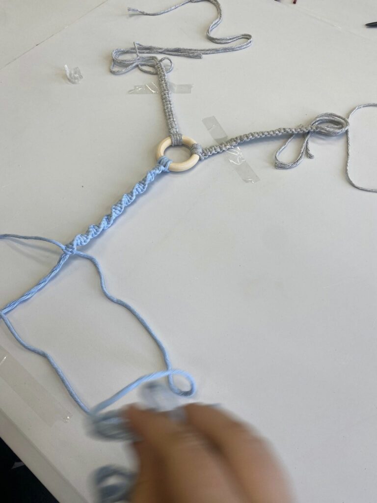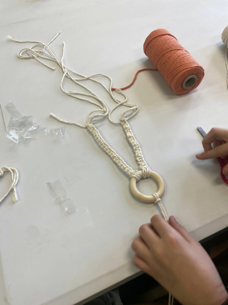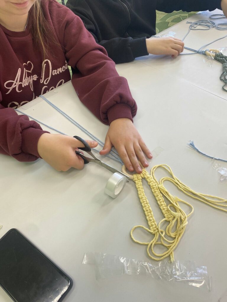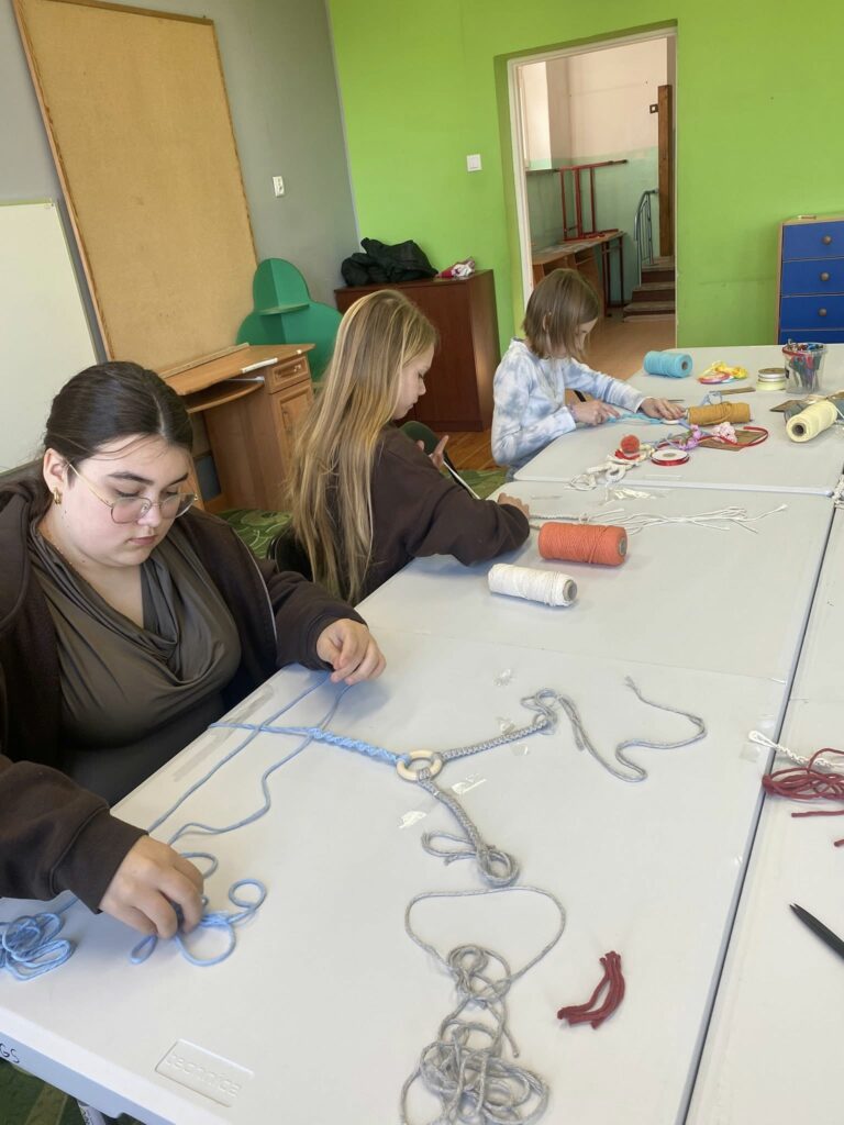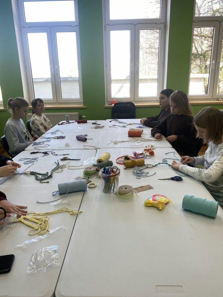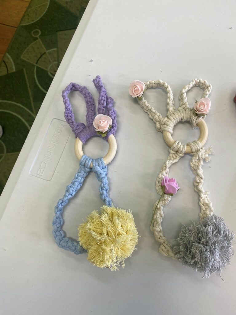 W sobotę 21 marca odbyły się warsztaty, podczas których dzieci miały okazję spróbować swoich sił w makramie i stworzyć własne wielkanocne zajączki.