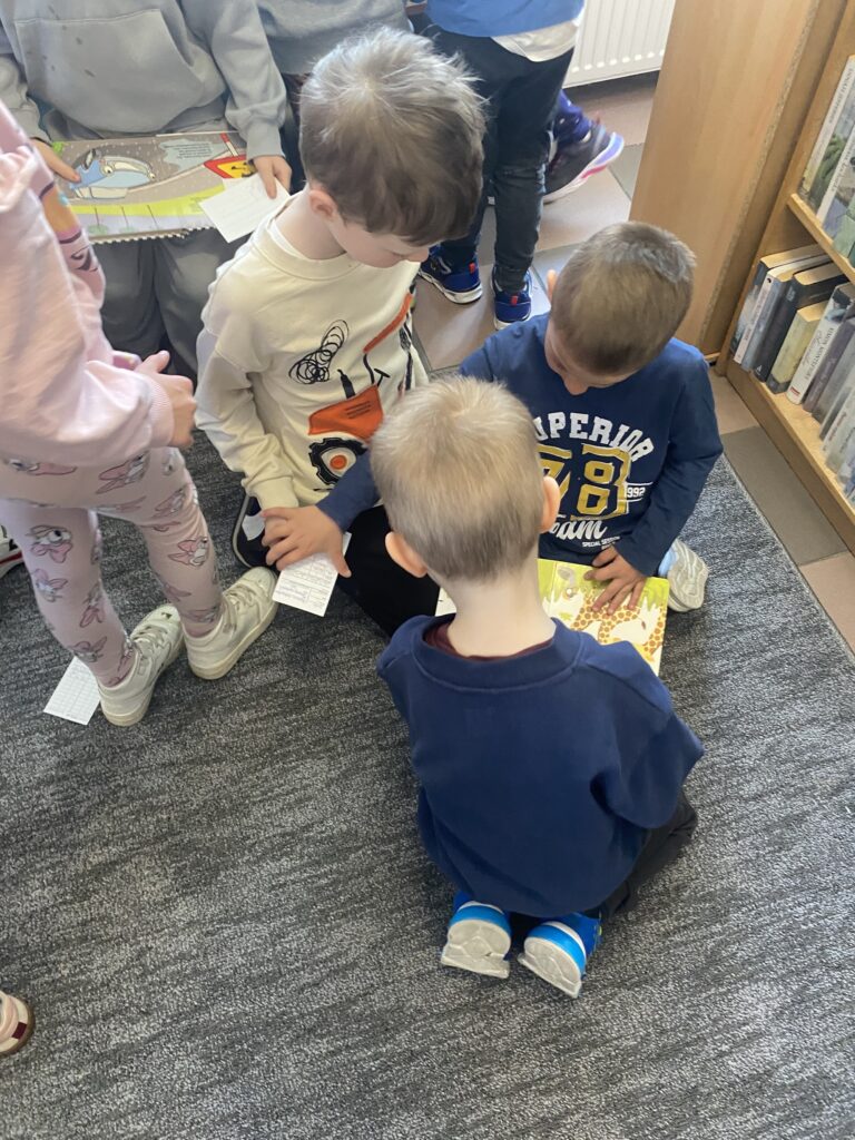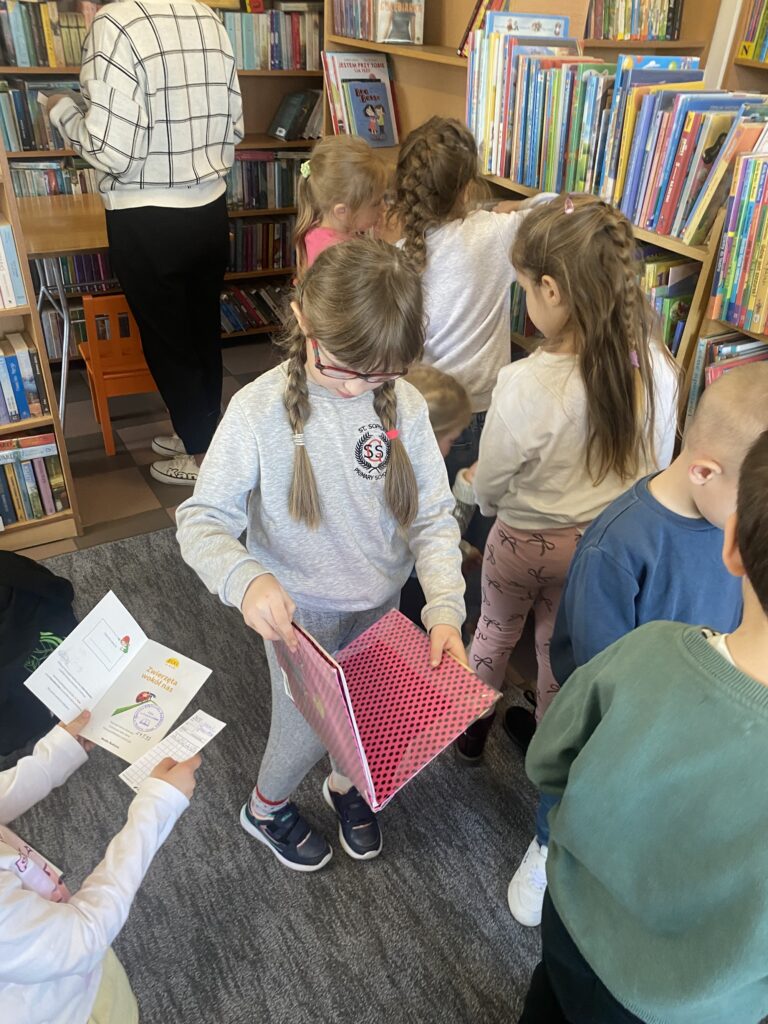 Tematem spotkania była książka i biblioteka. Dzieci poznały najważniejsze zasady korzystania z biblioteki, dowiedziały się, jak zostać czytelnikiem oraz jak dbać o książki. Wysłuchały opowiadania „Biblioteka” z serii „Przygody Fenka”, wierszy pt.: „Skarga książki”, “Prośby książki” oraz rozwiązywały zagadki związane z bohaterami bajek.