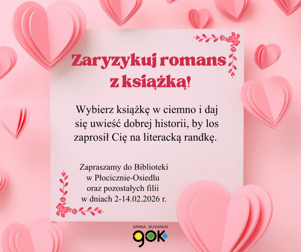 Przyjdź na randkę w ciemno z książką do Biblioteki w Płocicznie-Osiedlu oraz do pozostałych filii w dniach 2-14.02.2026r.