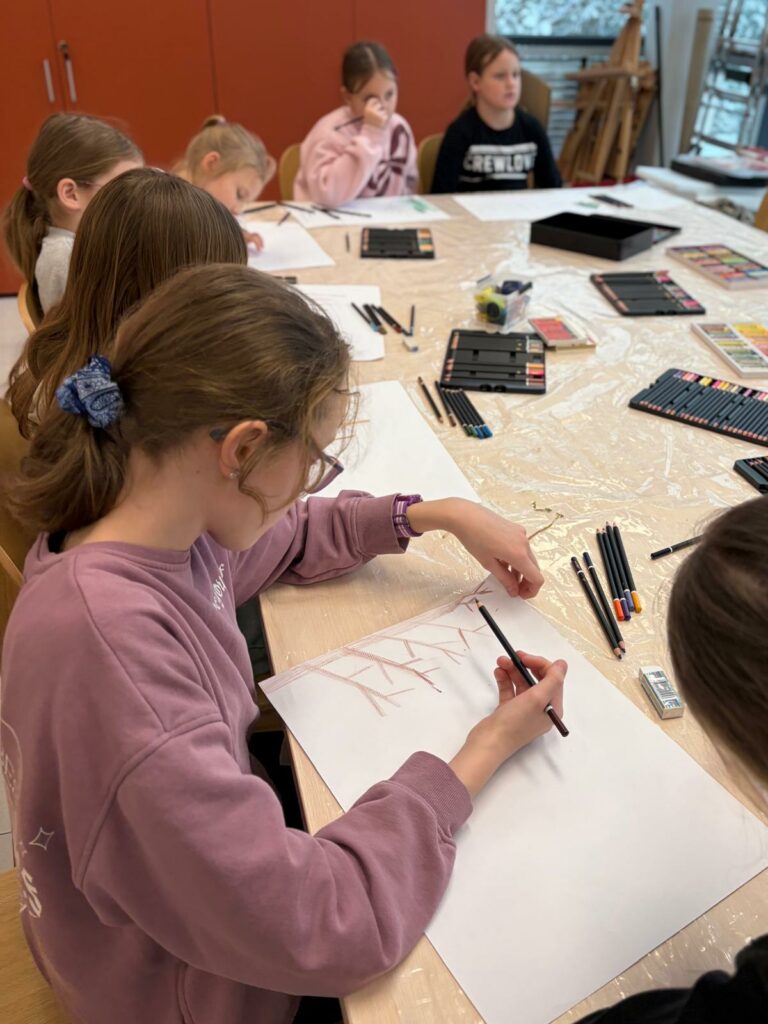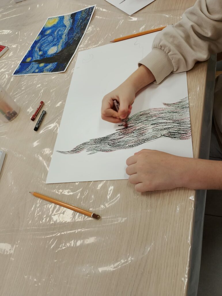 Ostatnie miesiące w pracowni papieru i nitki były pełne kolorów, nożyczek, kleju i niekończących się pomysłów. Na stołach pojawiały się rysunki, kolaże, prace z włóczki, filcu i pasteli, a czasem całe małe konstrukcje z papieru i różnych materiałów.