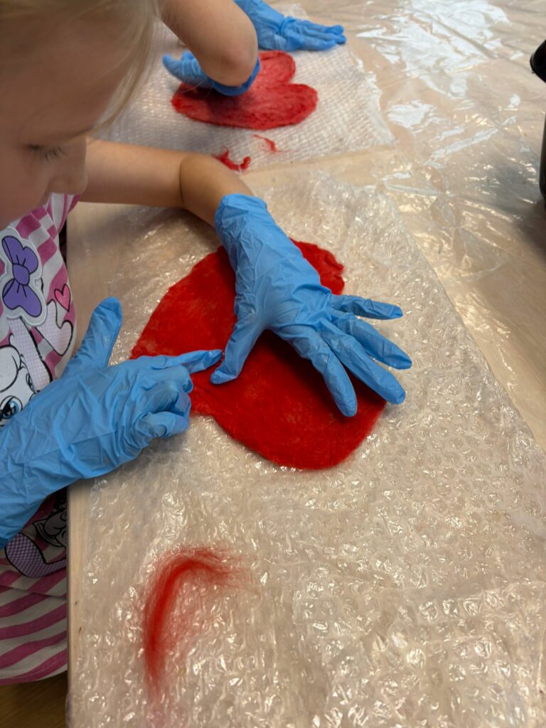 Każde spotkanie przynosiło inną technikę i nowe odkrycia – jak połączyć kolory, jak coś zszyć, przykleić albo zbudować. Było dużo eksperymentowania, obserwowania i szukania własnych rozwiązań, a przy okazji ćwiczenia rąk i wyobraźni.