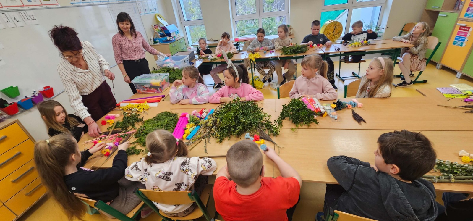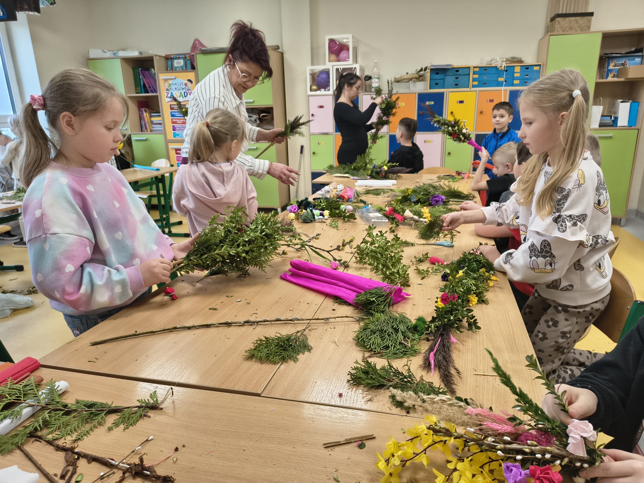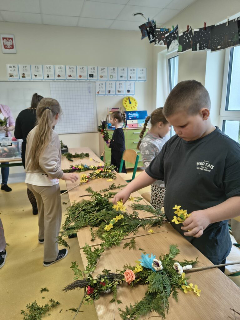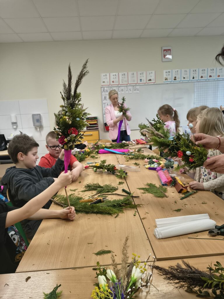 23 marca przeprowadziliśmy warsztaty tworzenia palm wielkanocnych dla uczniów pierwszej klasy Szkoły Podstawowej w Płocicznie-Tartak