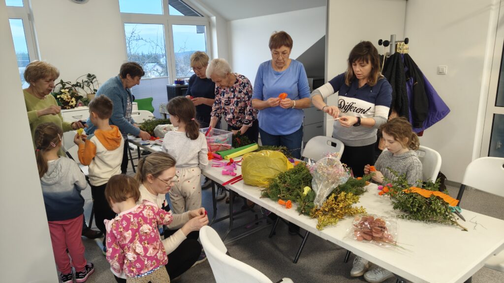 W ostatnich dniach wychodząc na przeciw potrzebom mieszkańców, w świetlicach OCiKGS zorganizowane zostały ,,Rodzinne warsztaty Wielkanocne”. Była to okazja do integracji i wspólnego tworzenia wielobarwnych palm i stroików Wielkanocnych. Przedświąteczna atmosfera udzielała się wszystkim uczestnikom zajęć. Było gwarnie, radośnie i kolorowo, a efekty tych zajęć możecie obejrzeć w naszej fotorelacji.