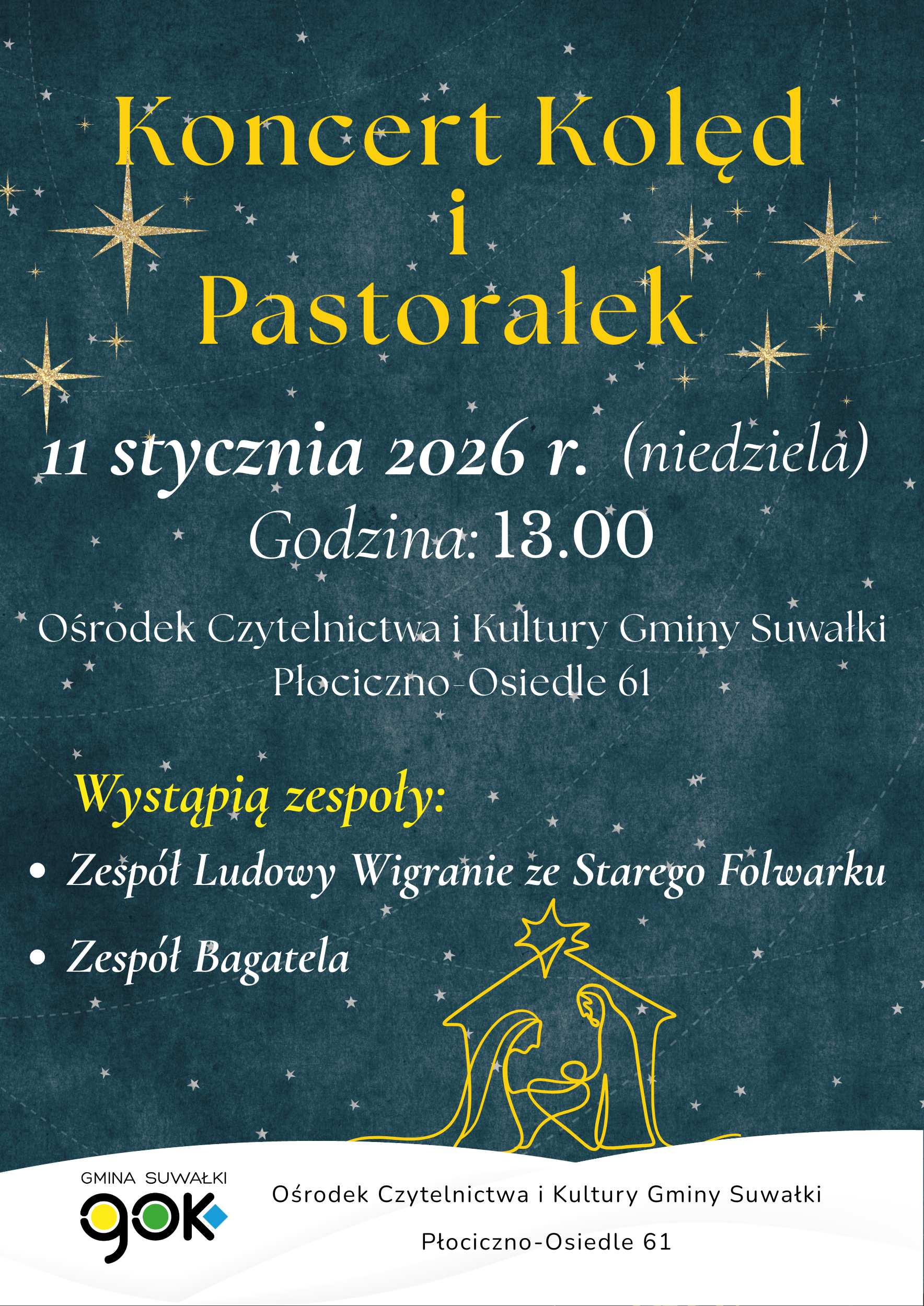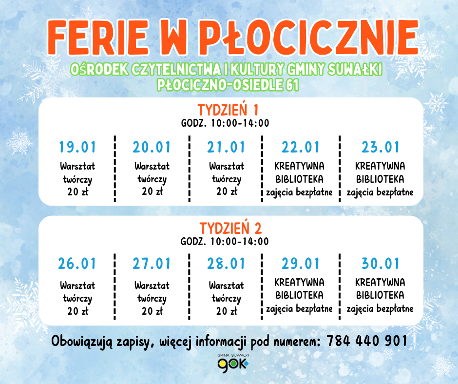 Zgłoszenia można przesyłać na e-mail: kontakt@gok.suwalki.pl lub telefonicznie pod numerem: 883 284 688