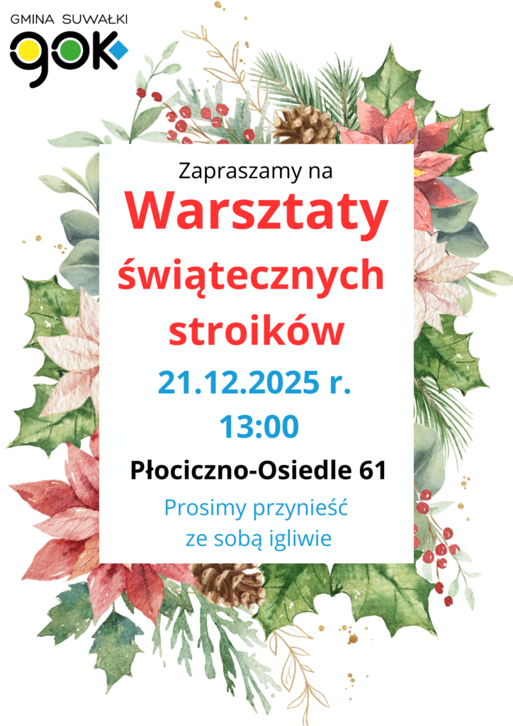 Zapraszamy na warsztaty świątecznych stroików do Płociczna-Osiedle.